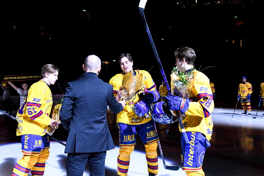 Både Brynäs och Djurgården har genom åren varit duktiga på att ta fram framgångsrika juniorer. Innan matchstart den här kvällen hyllades Anton Frondell, Victor Eklund, Viggo Björck (Djurgården) och Lucas Pettersson (Brynäs) för sina framgångar i JVM, som ju slutade med att Juniorkronorna tog hem guldet. Hela den här kvartetten är otroligt skickliga spelare och den svenska hockeypubliken får passa på att njuta. Om bara något år lär ingen av dem spela kvar i SHL och istället ta sig till Nordamerika.