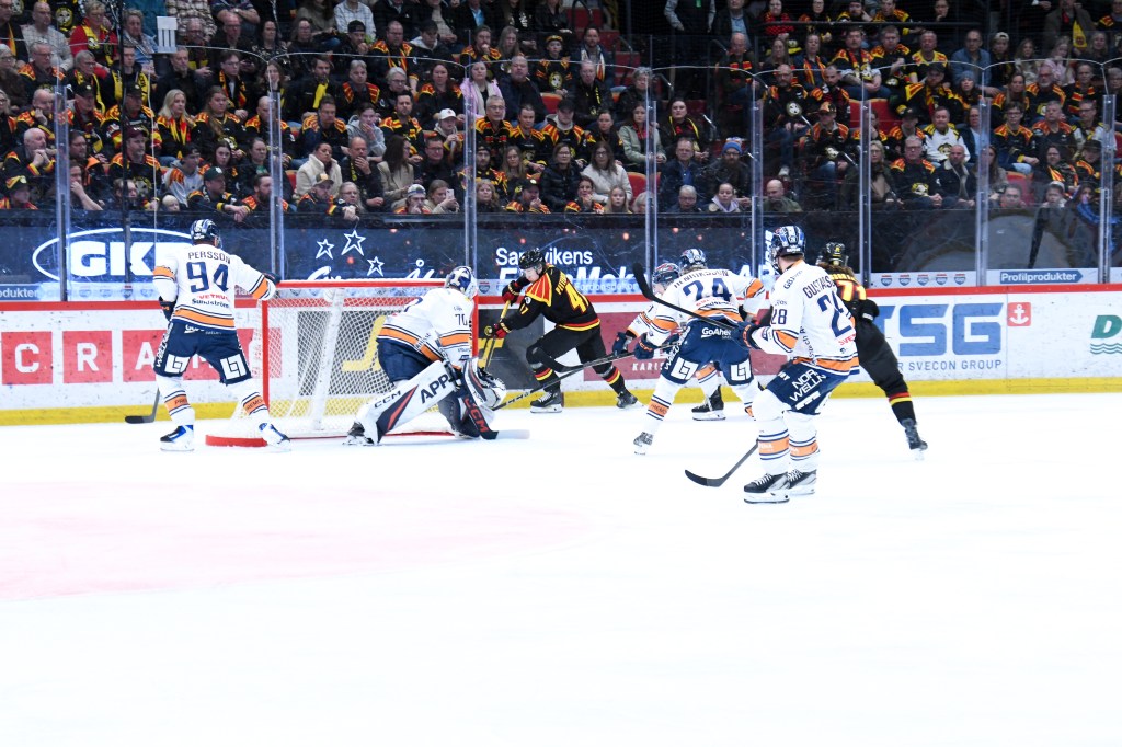 Några tuffa tacklingar och heta ordväxlingar gjorde att stämningen kändes stundtals irriterad på isen. Det kanske inte är så konstigt,med tanke på vad som står på spel i ett slutspel. Det finns såklart otroligt mycket vilja hos båda lagen. Den största irritationen stod nog däremot publiken i Monitor ERP Arena för. Brynäs Oskar Lindblom var avstängd den här matchen efter en incident under förra matchen med Växjös Brian Cooper. Amerikanen hade haft klubban i ansiktet på Lindblom innan dess men gick ostraffad från det. Det hade hemmapubliken inte glömt bort den här eftermiddagen. Varje gång Cooper hade pucken, blev det en visselorkan och buropen haglade.